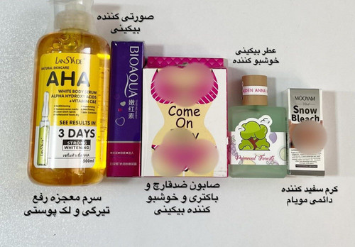 پک روشن کننده و خوشبو کننده نواحی حساس بدن شامل عطر بدن سرم آ اچ آ و قطره سفید کننده مویام و صورتی کننده وصابون روشن کننده